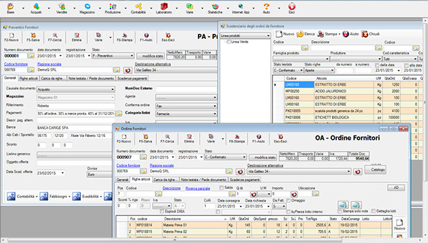 In TECHNICS, the supplier lists are managed taking into account the particular problems faced by cosmetic companies. Among other things, the need to purchase products, especially raw materials, by mediating between the quantities needed for production and the cuts that the suppliers make available.